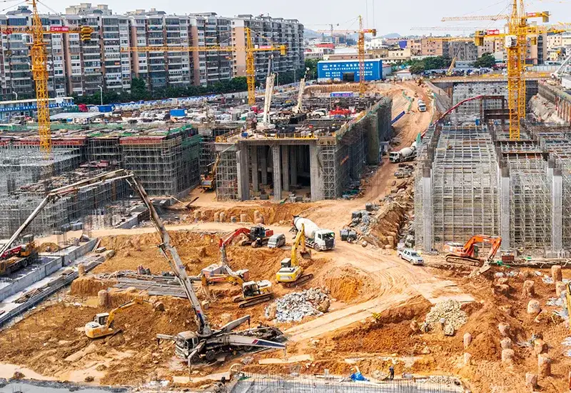 Peralatan sing ditrapake: mixer konkrit, rollers, krenjang, grader.